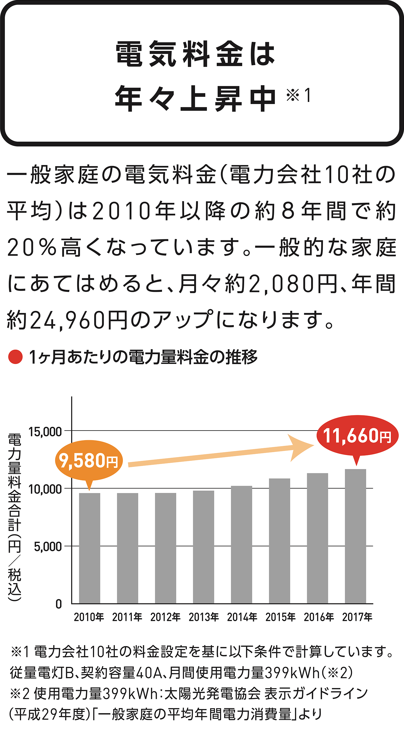 自宅で電気をつくるため、電気代の大幅カットが期待できます。